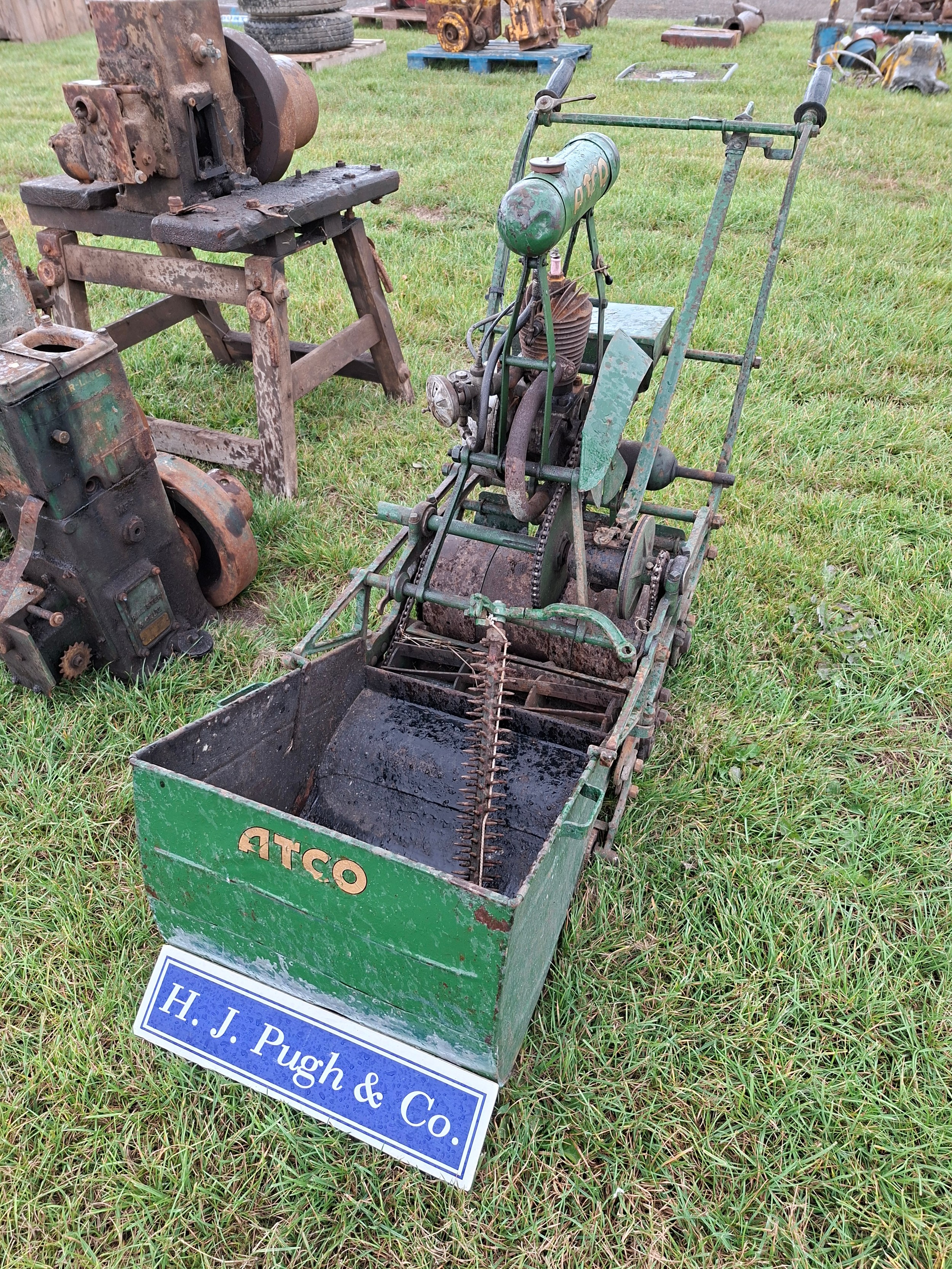 Atco mower. Runs. Starting handle in office