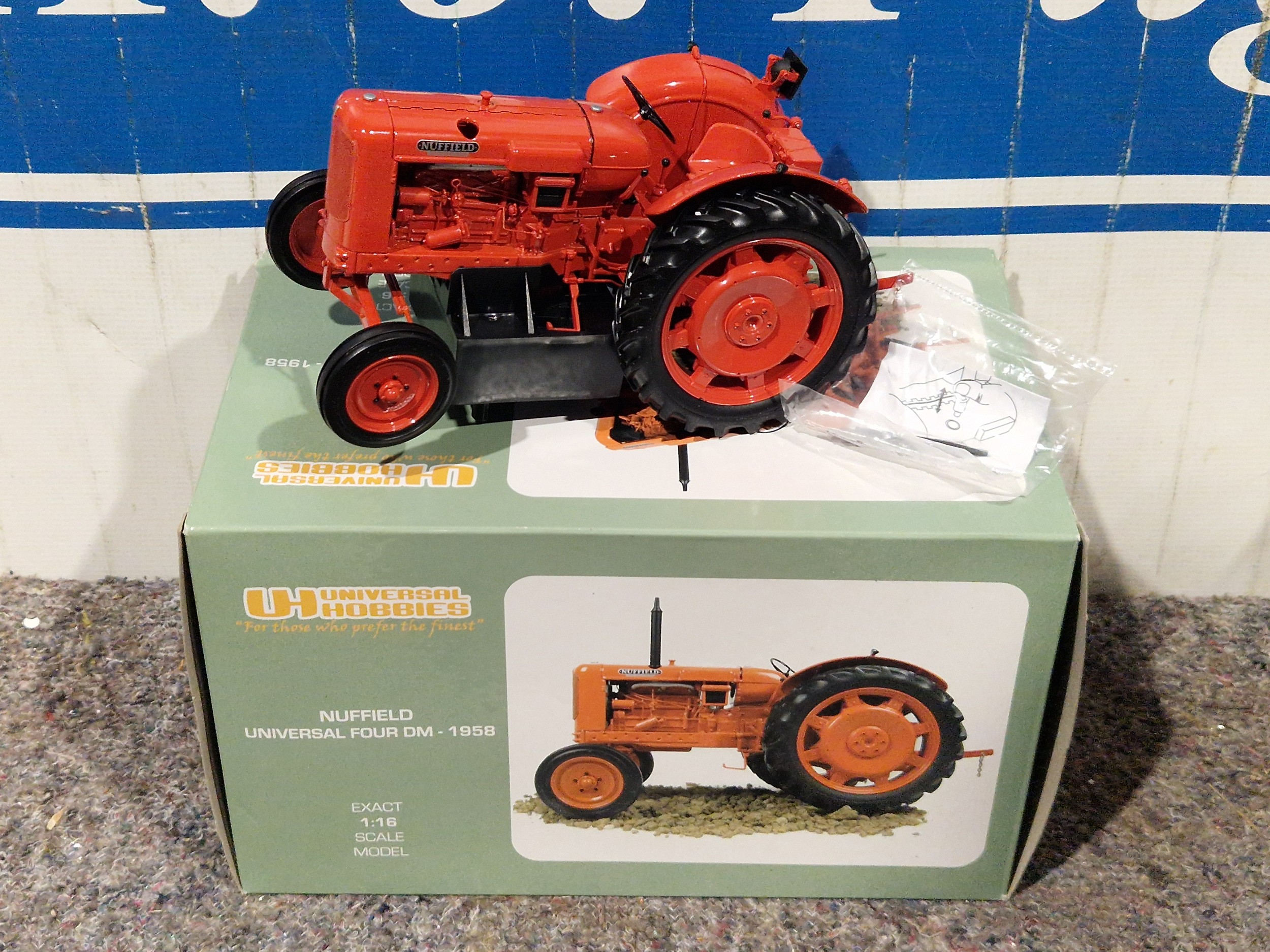 Universal Models 1:16 scale Nuffield Universal four DM tractor model No.UH2715. Stored in display cabinet. In good condition with original box and packaging