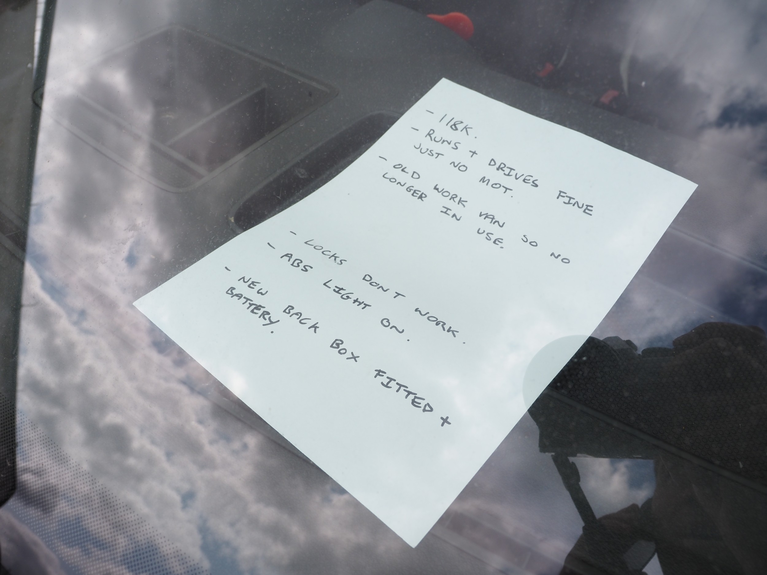 Volkswagen Caddy TDI van. No MOT. Showing 118,093 miles. Declared Cat. D 19/10/2011. No MOT. Reg. PK09 XCP. Key in office